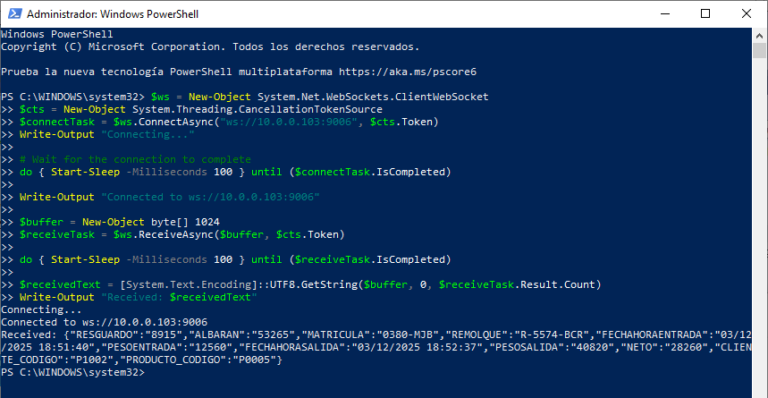Simplemente, activa la opción. La próxima vez que se inicie TP.NET, se enviarán notificaciones a todos los clientes conectados a TP.NET mediante un websocket cada vez que se completa una pesada.