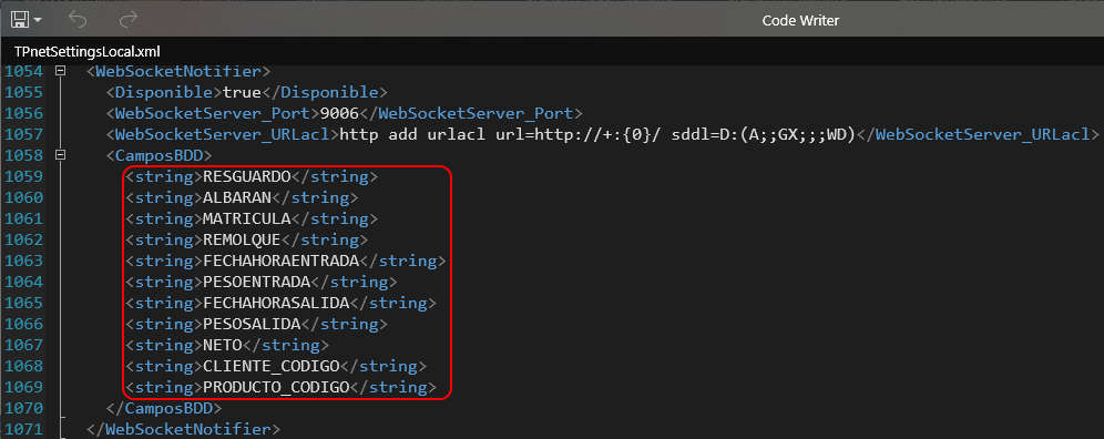 El orden y los campos que TP.NET envía se pueden configurar manualmente en el archivo TPnetSettingsLocal.xml: